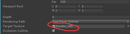 3. 分別設置2個攝像機的渲染到紋理屬性,